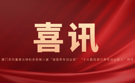 近日,由共青團福建省委、福建省委農辦、福建日報社、福建省教育廳、科技廳、工信廳、人社廳等13個單位聯合開展的第八屆“福建青年創業獎”評選活動結果公示,經推薦、初審、公示、終評等多道程序,廈門安科集團有限公司(以下簡稱“廈門安科”)董事長鐘松杏獲評“十大最具潛力青年創業新人”稱號。福建省50名青年入選,廈···