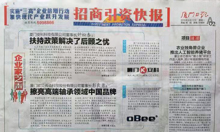 媒體采訪 | 扶持政策解決了后顧之憂—《廈門日報》專訪廈門安科董事長鐘松杏