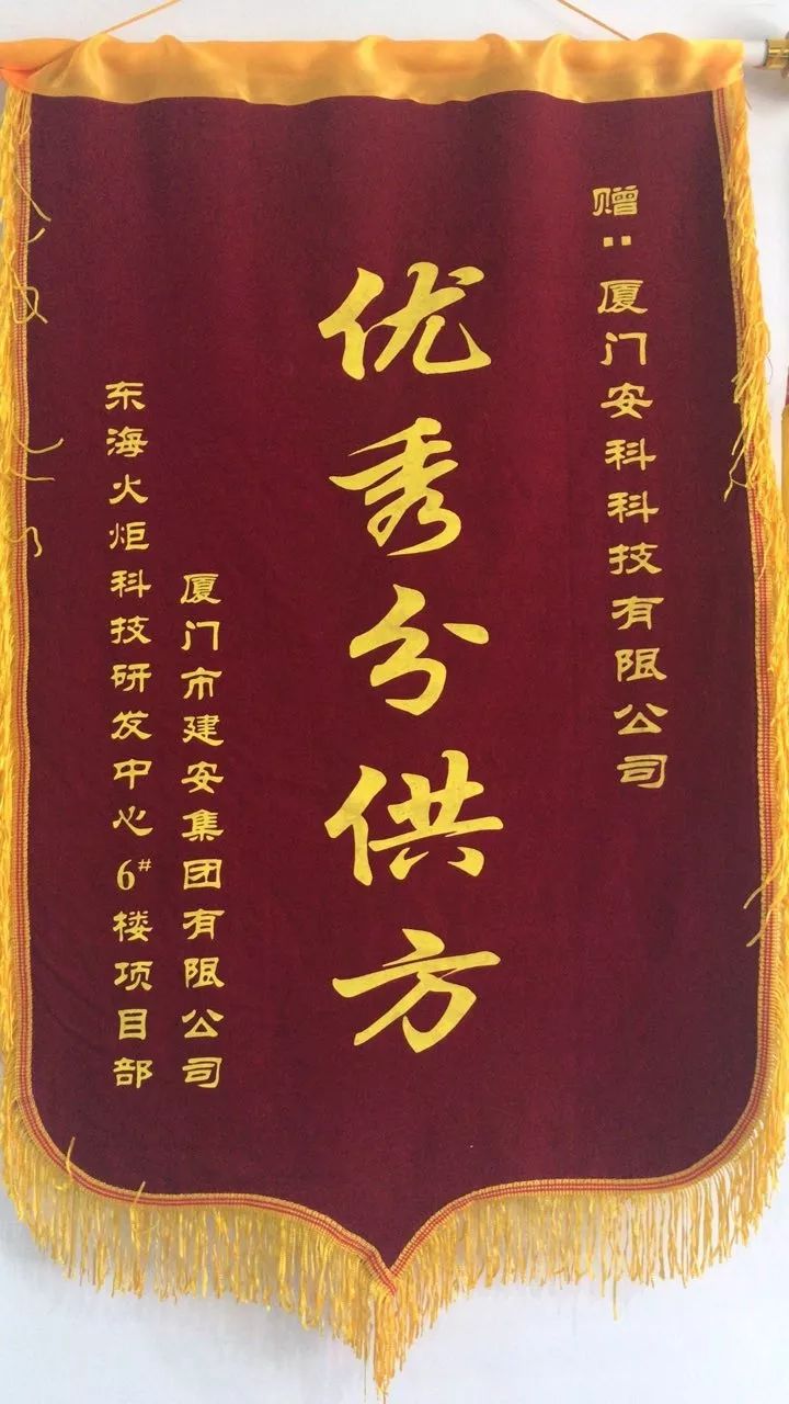 廈門安科獲廈門市建安集團(tuán)有限公司頒發(fā)的“優(yōu)秀分供方”榮譽(yù)錦旗