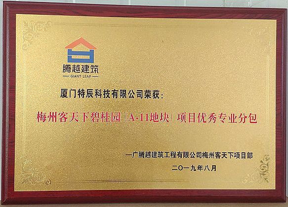 ?廈門安科旗下全資子公司—廈門特辰科技有限公司榮獲廣騰越建筑工程有限公司頒發(fā)的“優(yōu)秀專業(yè)分包”榮譽(yù)牌匾