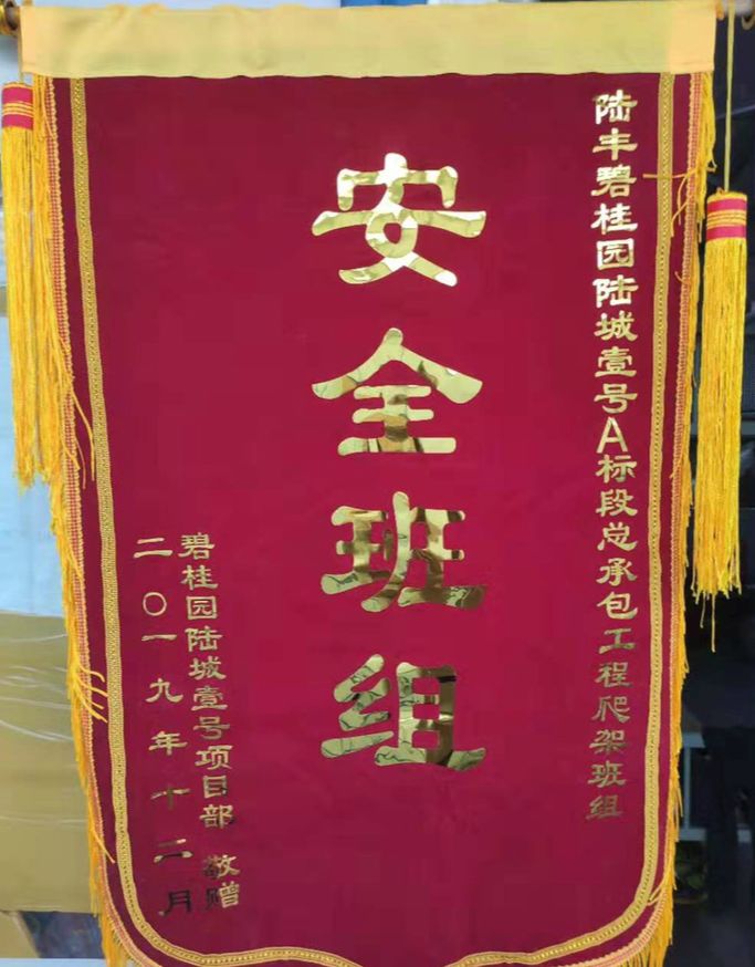 廈門安科獲碧桂園集團(tuán)和黑龍江省建工集團(tuán)共同頒發(fā)的“安全文明模范班組”榮譽(yù)錦旗
