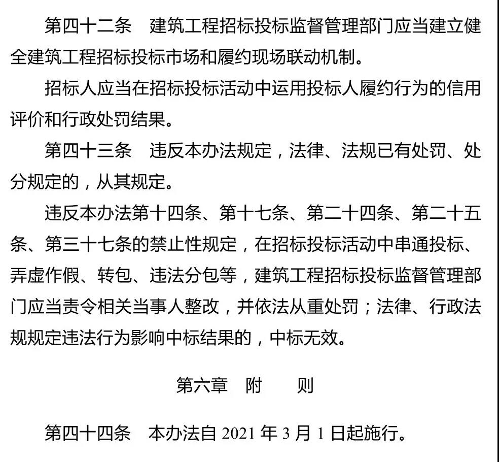 《安徽省建筑工程招標投標管理辦法》,自2021年3月1日起施行。